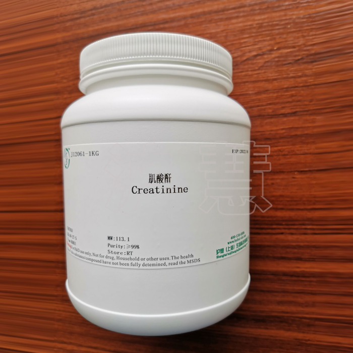 别名: 肌酐;肌酸酐,肌氨基酐,缩水肌肉素,2-氨基-1-甲基咪唑啉-4-酮,2-氨基-1,5-二氢-1-甲基-4H-咪唑啉-4-酮